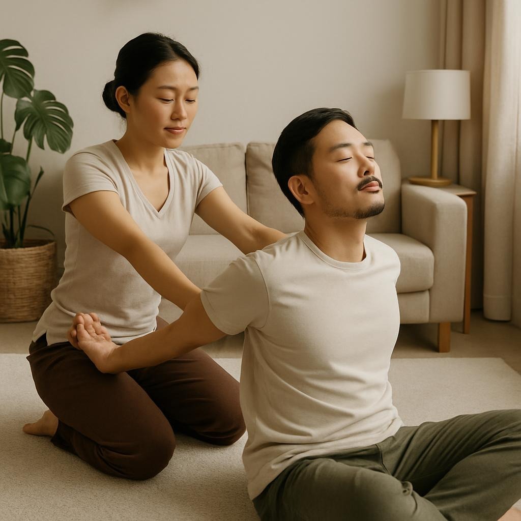 타이 마사지는 전신 스트레칭, 압박, 호흡의 조화로 몸과 마음의 균형을 회복하는 마사지입니다.